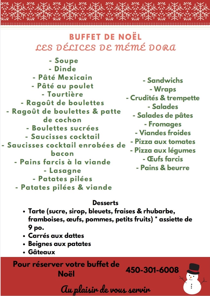 Welcome to Les Delices de Meme Dora, a charming eatery nestled in the heart of Saint-Chrysostome, QC. This delightful spot is run by two friendly sisters who elevate the experience with their infectious joviality. Known for their exceptional casse-croute offerings and delectable baked goodies, the menu is a treasure trove of flavors.